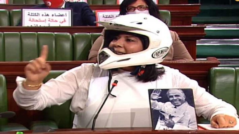 عبير موسى تدخل مجلس النواب بخوذة وقميص واق من الرصاص